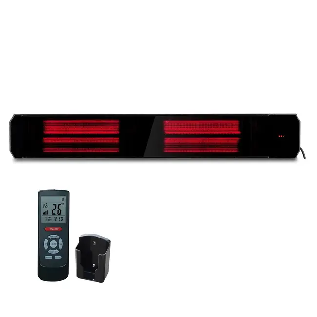Der Heizstrahler ist von 1600 bis 3200Watt regelbar und wird mit einer Anleitung, einem Montagesatz und einer Fernbedienung geliefert und verfügt über eine eingebaute Thermostatsteuerung. Wand- und Deckenmontage.