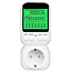 Dieser Energiezähler verfügt über mehrere Optionen, um den Verbrauch zu messen. Der Stecker des Heizgeräts wird in den Energiezähler gesteckt. Das Display zeigt den Verbrauch auf Tages-, Wochen- und Monatsbasis an. Wenn Sie den Kilowattpreis einstellen, können Sie die Gesamtstromkosten sehen.